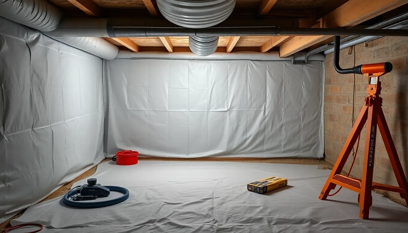 The first step includes removing existing debris, insulation, and any standing water. Next, it’s essential to repair any cracks or openings in the foundation walls. After repairs, installers place a durable vapor barrier on the floors and walls, ensuring complete coverage to control moisture. Installation of a dehumidifier follows, which helps maintain humidity levels. Proper ventilation systems also receive attention, allowing airflow while minimizing moisture accumulation. Regular monitoring completes the process, ensuring conditions remain ideal over time.